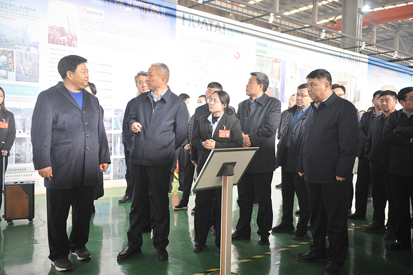 在华泰智能设备集团成品展示车间,张弓主任及其代表团对华泰的发展历程和未来规划有了深入的了解。华泰是一家集粮油机械、环保机械制造企业设计、研发、制造、生产、安装为一体的企业。新三板上市企业、河南省优秀民营企业、省级企业技术中心、河南省工程技术研究中心、河南省技术创新示范企业、省博士后创新实践基地、绿色工厂、专业重点“小巨人”企业。
